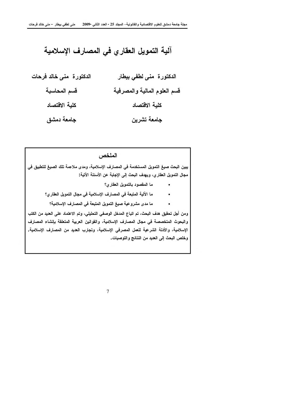 مراجعة وتقييم لـ : آلية التمويل العقاري في المصارف الإسلامية