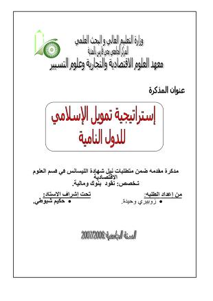 مراجعة وتقييم لـ : استراتيجية التمويل الإسلامي للدول النامية