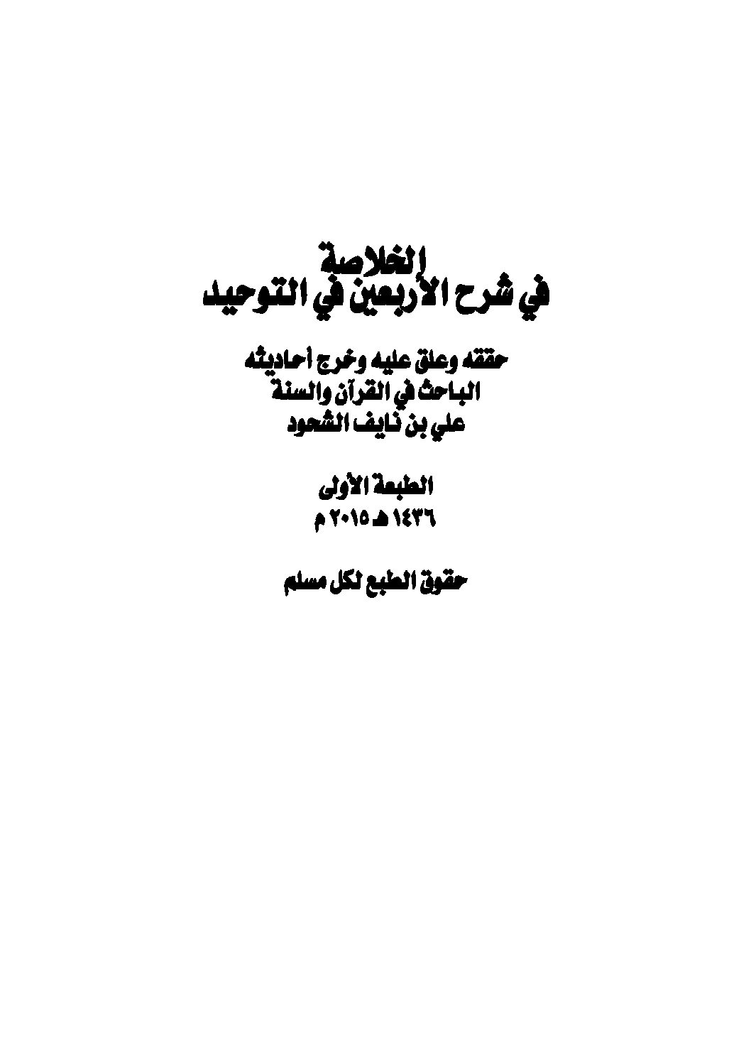 مراجعة وتقييم لـ : الخلاصة في شرح الأربعين في التوحيد