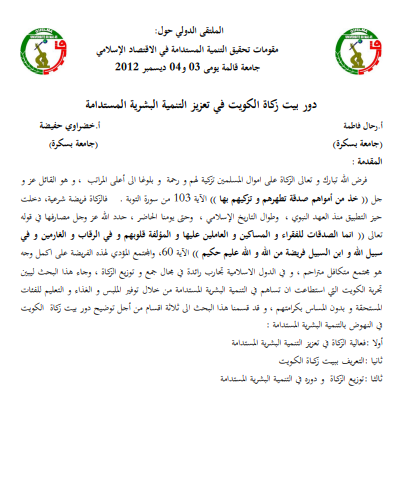 مراجعة وتقييم لـ : دور بيت زكاة الكويت في تعزيز التنمية البشرية المستدامة