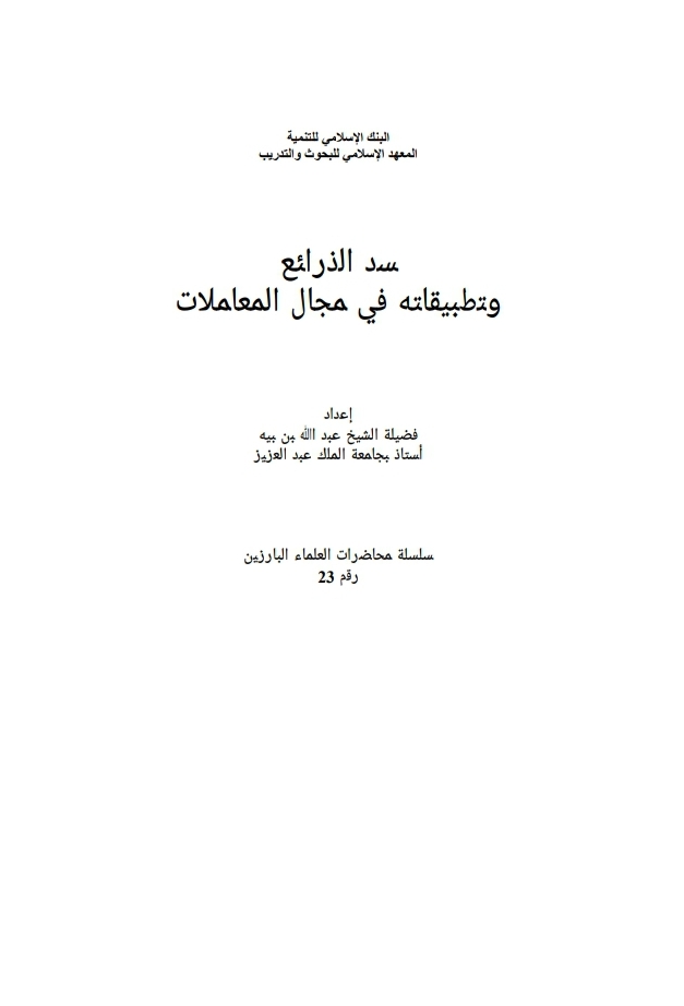 مراجعة وتقييم لـ : سد الذرائع وتطبيقاته في مجال المعاملات