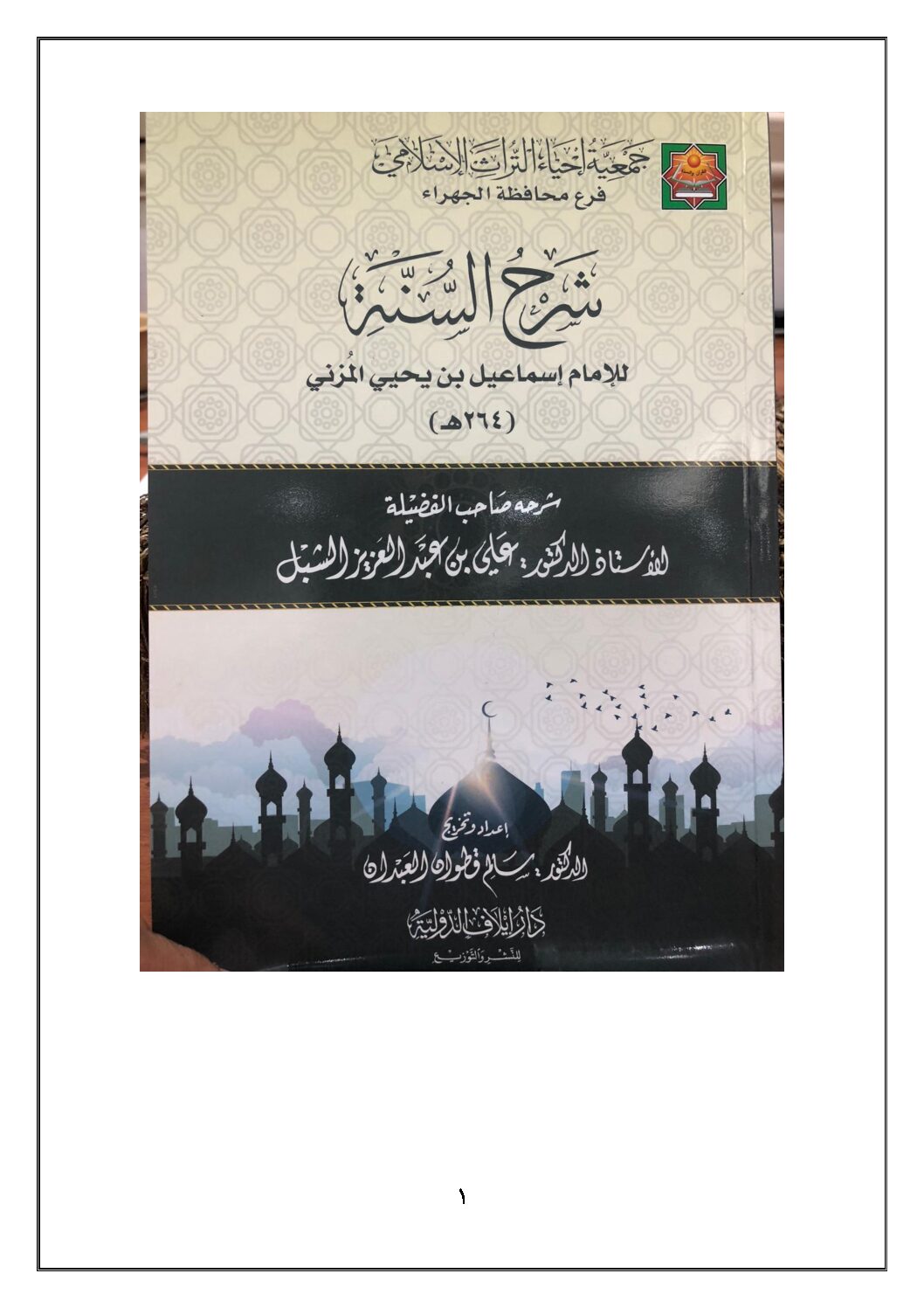 مراجعة وتقييم لـ : شرح السنة للإمام اسماعيل بن يحيي المُزني للشيخ علي الشبل