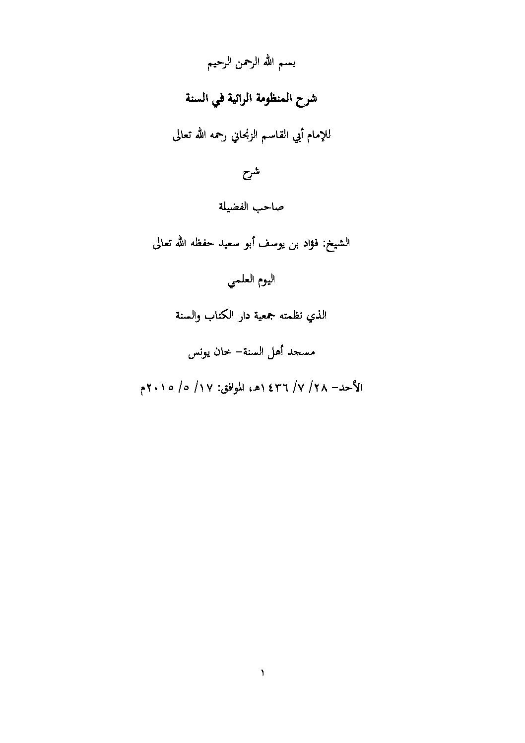 شرح المنظومة الرائية في السنة للإمام أبي القاسم الزنجاني