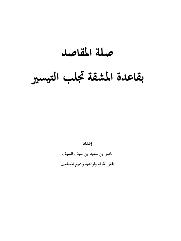 صلة المقاصد بقاعدة المشقة تجلب التيسير