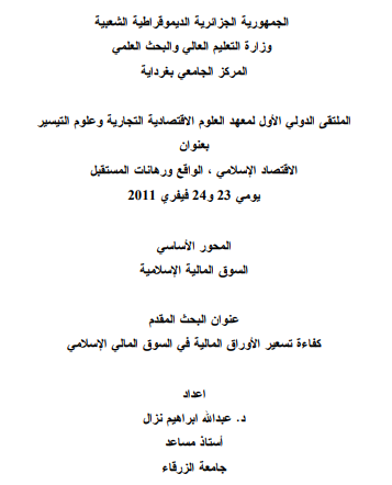 مكتبة منار نادي الاقتصاد الإسلامي لتدريس العلم الشرعيننشر العلم والتجارب بالوسائل التعليمية المختلفة– المكتبة الإلكترونية – بحث عن: مواد جديدة أشهر المواد أضف مادة العقيدة عرض الكتب السيرة والحديث عرض الكتب التفسير وعلوم القرآن عرض الكتب الفقه الإسلامي وأصوله عرض الكتب أصول الدين عرض الكتب أقسام الكتب البكالوريوس – جامعة الكويت الفقه وأصول الفقه منوعات المجلات العلمية رسائل جامعية المكتبة الرمضانية الفقه الإسلامي وأصوله السياسة الشرعية فقه المرأة والأسرة الفرائض والمواريث أصول الفقه والقواعد الفقهية فقه العبادات فقه المعاملات والاقتصاد الإسلامي أصول الدين السيرة والحديث العقيدة التراث الفقهي الفقه الشافعي الفقه الحنبلي الفقه المالكي المزيد من أقسام الكتب فعالية السياسة المالية في ظل الاقتصاد الإسلامي قراءة في حدود الاختيار الإسلامي بين المناهج الموجودة وشروط الانطلاق لاقتصاد إسلامي حسب فكر مالك بن نبي قراءة تاريخية في تطور العمل بالصيرفة الإسلامية في دول المغرب العربي قياس جودة الخدمات المصرفية الإسلامية قياس كفاءة البنوك الإسلامية والتقليدية في الجزائر كفاءة تسعير الأوراق المالية في السوق المالي الإسلامي مبادئ الاقتصاد الإسلامي وخصائصه مبادئ ومنهج الاقتصاد الإسلامي مدى تأثر المصارف الإسلامية بتداعيات الأزمة المالية العالمية مسيرة الاقتصاد الإسلامي في ماليزيا من خلال أفكار محمد مهاتير مشروعية المضاربة في الاقتصاد الإسلامي قواعد السعة والمرونة وتطبيقاتها الاقتصادية القواعد الفقهية الضابطة للتخطيط الاقتصادي في الإسلام الموازنة بين الزكاة والنظرية العامة للضريبة استثمار الأوقاف وضوابطه الشرعية، مع الإشارة لحالة الجزائر « مدخلات أقدم المداخلات التالية » عرض المزيد ...